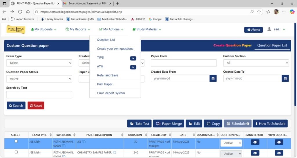 Beyond test creation, the portal also provides features for managing exam results, monitoring performance, and exporting content in both digital and printable formats. Coaching centers can customize papers for competitive exams like JEE, NEET, and Olympiads, while schools and publishers can create tailored assessments for different classes and subjects. This makes the platform not just a tool, but a complete solution for modern exam preparation and delivery.